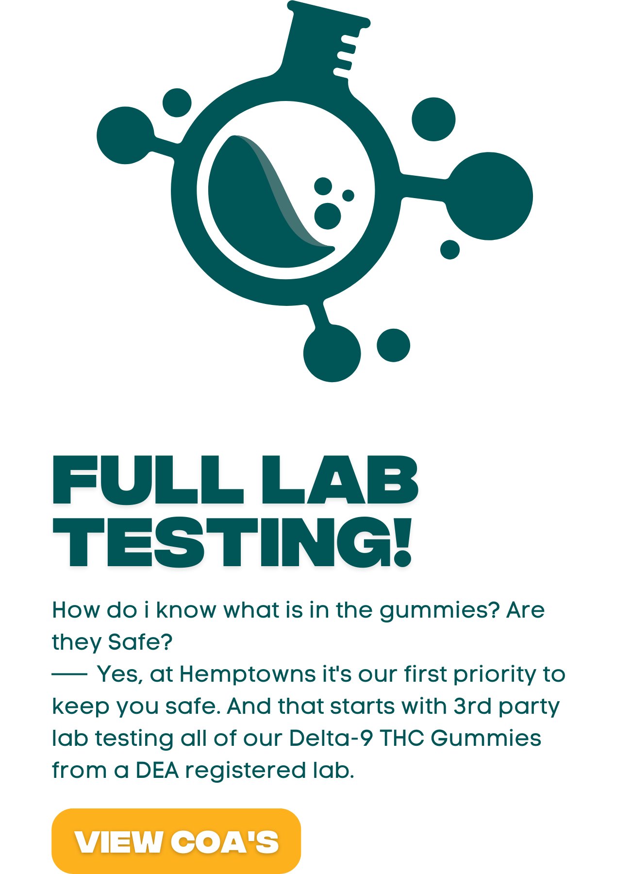 All Hemptowns Delta-9 products are formulated, manufactured and lab tested in-house at our state-of-the-art, FDA-registered facility space in Florida. We implement the most up-to-date Standard Operating Procedures (SOPs) and craft our products using Current Good Manufacturing Practices (CGMPs) to guarantee you receive the best-tasting and highest-quality Delta-9 Gummies.